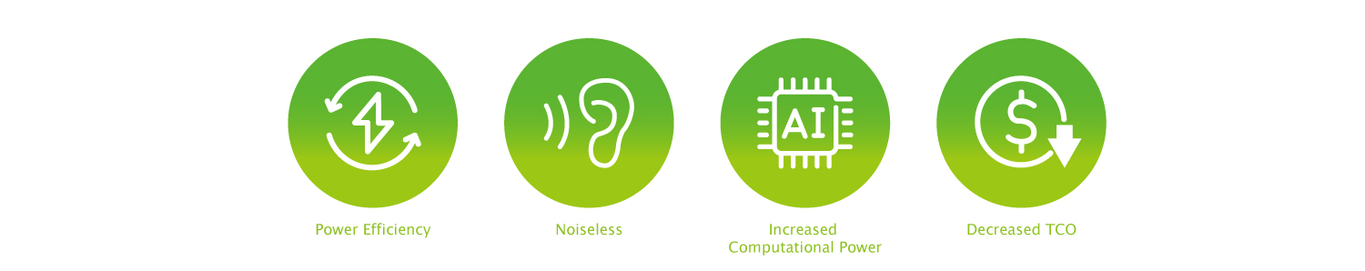 ● 更高的冷卻效率,穩(wěn)定提升服務(wù)器運(yùn)算力,長(zhǎng)期下來(lái)降低數(shù)據(jù)中心總體擁有成本(TCO)